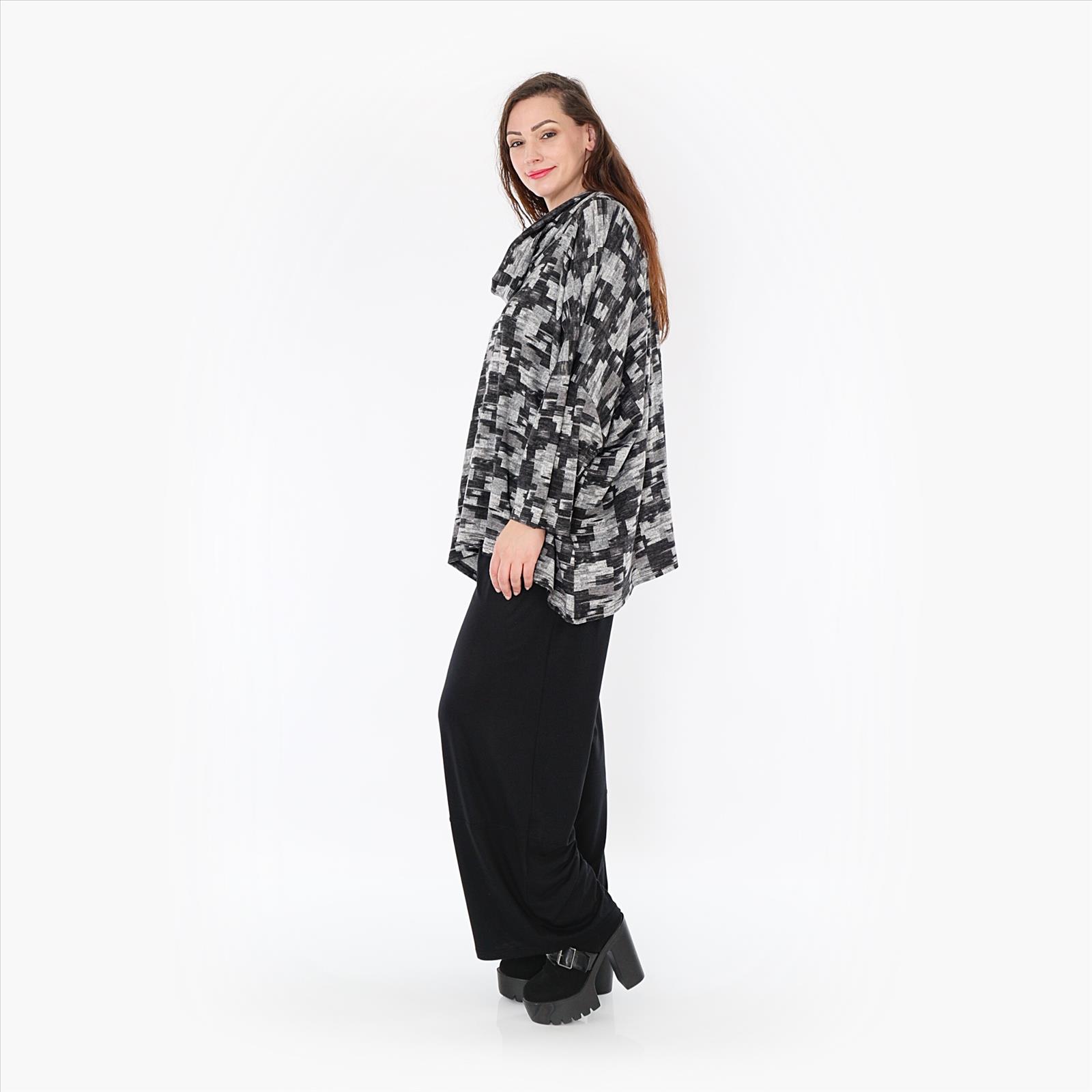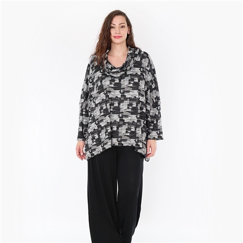 So so soft batwing cowl jumper in a funky abstract print. The cowl is big and drapes beautifully, and the huge batwing shape looks fabulous on ALL sizes. Layer up with a longer tunic for a funky look, and perfect to wear with either balloons, harems, or leggings. The choice is yours!