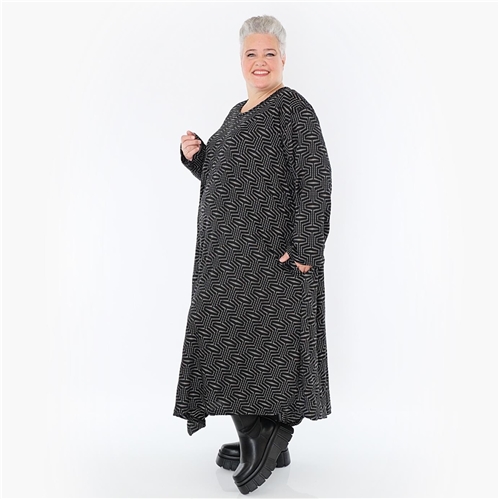 This one size AKH Dress is an absolute must-have to refresh your Autumn wardrobe. The shape is a funky bubble with an asymmetrical point at the hem line. It features a classic round neckline, with dropped shoulders and the essential side seam pockets, which makes this dress suitable to dress up with chunky jewellery and nice shoes, or dress down with comfy flats. The fabric is really stretchy and soft with a super textured effect. Super flattering for all shapes and sizes! This dress is SO me! So make sure you buy one before I take one home with me!